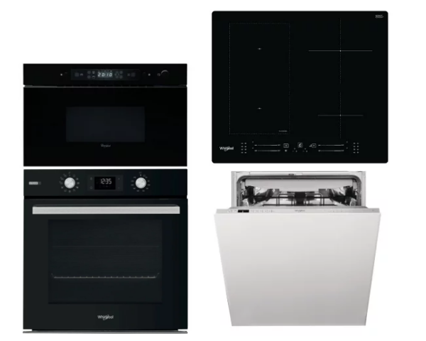 4-dílné sety, Trouba + Mikrovlnná trouba + Varná deska + Myčka nádobí, VÝHODNÉ SETYSET WHIRLPOOL W Collection W7 OS4 4S1 P BL + W7 MD440 NB + WL S7960 NE + WIP 4O33N PLE S