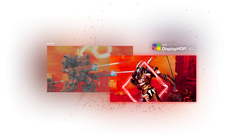 Dokonce i nejnižší úroveň funkce HDR (High Dynamic Range) neboli vysokého dynamického rozsahu představuje u běžných monitorů výrazné vylepšení. Maximální jas 400 cd/m² umožňuje vašemu monitoru zvýšit kvalitu obrazu prostřednictvím pestřejšího spektra barev a rozmanitějšího kontrastu. Certifikace VESA zajišťuje realistické zobrazení herních a filmových světů s bohatými detaily.
