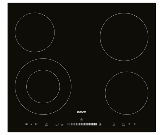 Sklokeramická varná deska Beko HIC 64502 T s dotykovým ovládáním vpředu. Tato deska nabízí 4 varné zóny, z toho jednu dvojitou. Deska má dotykové posuvné ovládání a funkci udržování teploty jídla.