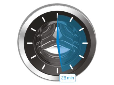 S programem Denní Express lze vyprat plnou náplň pračky při 30 °C za 28 minut. Skvěle se tak hodí pro pravidelné praní běžně znečištěného prádla, které potřebujete večer přeprat, aby bylo ráno suché.