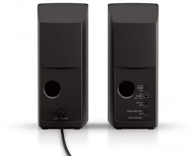 Dvojité duální vstupy signálu umožní, že k nim můžete najednou připojit počítač i přenosné zdroje audia jako MP3 přehrávač a další. Vhodné umístění ovládání a zástrčky na jednom z reproduktorů poskytují snadný přístup k ovládacím prvkům a ke konektoru sluchátek.