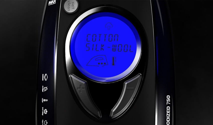 Obsahuje LCD obrazovku pro intuitivní a inovativní ovládání teploty. Jeho 4 různé žehlící programy upravují teplotu podle typu látky. Zapomeňte na nastavení před žehlením.