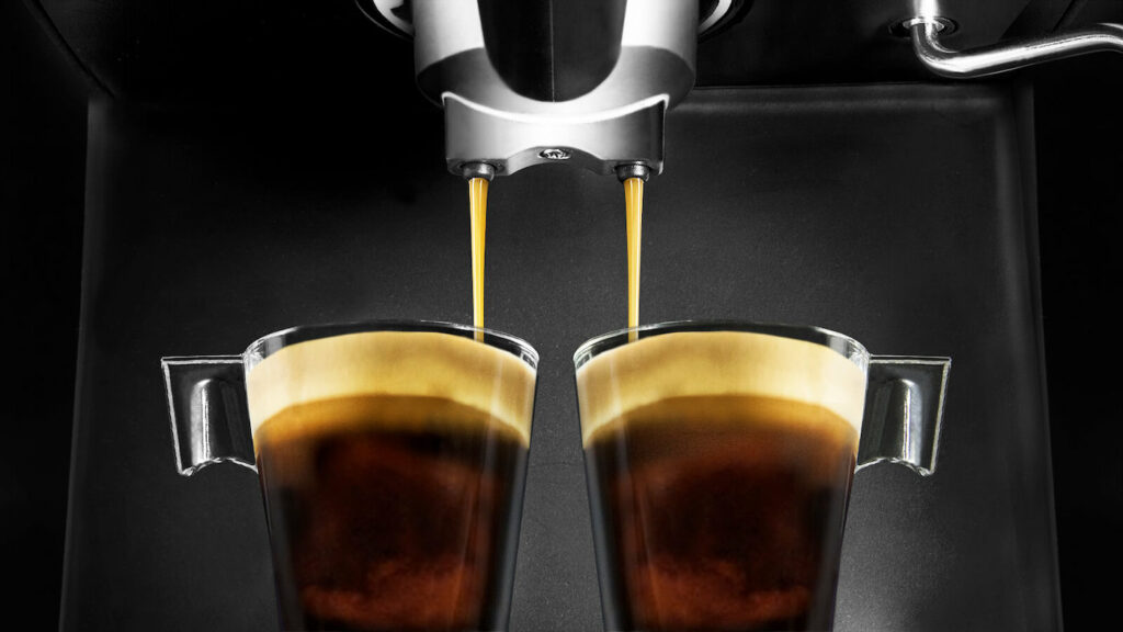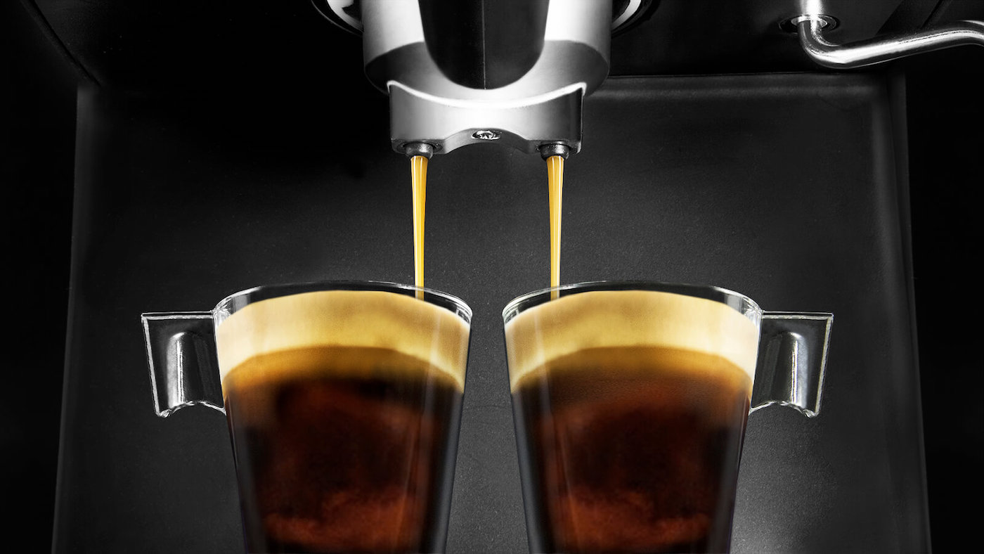 Připravte jednu nebo dvě kávy najednou díky dvojitému výtokovému ramenu a dvěma portafilterům s kapacitou pro jeden nebo dva šálky.