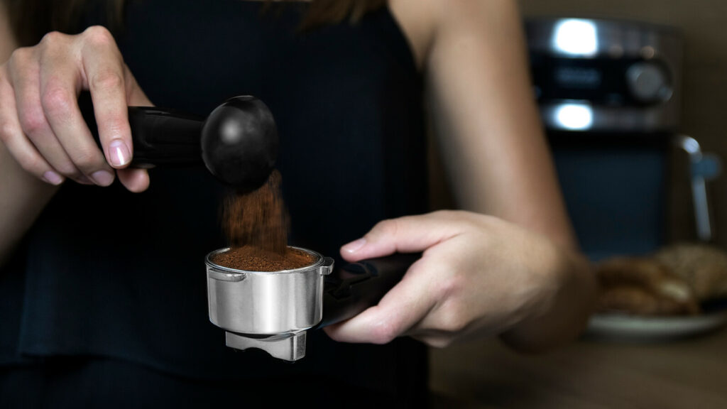 Kávovar obsahuje odměrku, aby bylo požito přesné množství kávy. Odměrka bude také použita k lisování kávy a dosažení intenzivnějšího aroma.