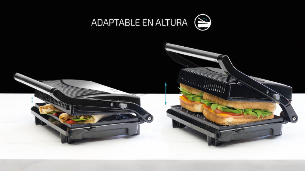 Horní deska je udržována plovoucím systémem, který se plně přizpůsobí jakémukoli jídlu nebo přípravě. Můžete vařit velké maso a vysoké sendviče a získat nejlepší opečení na vnější straně a nejlepší vaření na vnitřní straně.