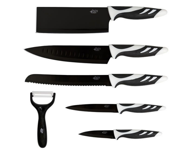 - Sada 6 švýcarských profesionálních nožů. Černá barva.