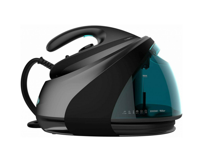 - Kompaktní parní stanice s výkonem až 3000 W, která zajišťuje rychlé vytápění žehličky pro jednoduché a efektivní žehlení.