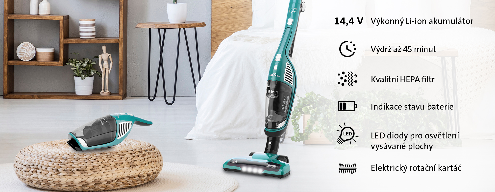 Užijte si vysávání bez kabelů s tyčovým vysavačem ETA Moneto. Díky bezdrátovému provozu a 14,4V Li-Ion akumulátoru můžete hodit starosti s přívodním kabelem za hlavu a užít si neomezený pohyb kamkoliv zrovna potřebujete.