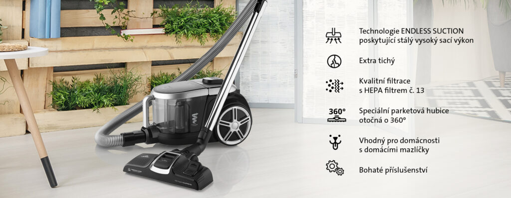 Kvalitní HEPA filtr č. 13 se postará o to, aby i ty nejjemnější částice zůstaly uvnitř vysavače a váš vzduch zůstal zdravý a čistý. To potěší nejen alergiky, ale také všechny majitele domácích mazlíčků.