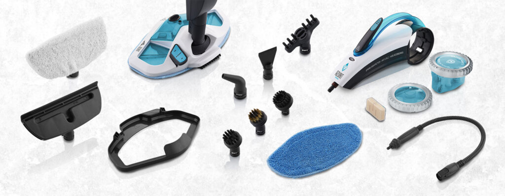 - Lze využít jako ruční parní čistič, nebo tyčový parní mop