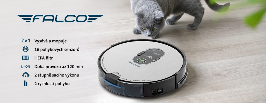 Vysavač Falco disponuje DIGITAL motorem zajišťujícím vysoký výkon a extra dlouhou životnost. Díky svému SLIM designu, vysaje bez problémů i pod nízkým nábytkem. Po úklidu jej nemusíte nikde hledat, po dokončení úklidu či zjištění nedostatku energie v akumulátoru se robotický vysavač Falco sám vrátí do nabíjecí stanice. Znovu plně nabitý je přibližně za 5 hodin.
