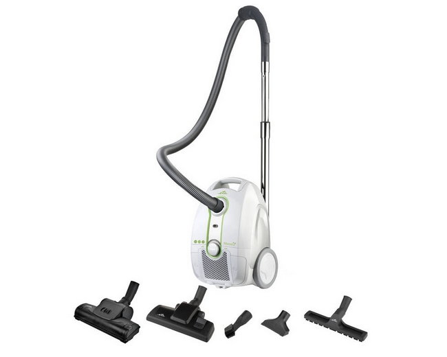 Ke komfortnímu užívání přispívá ergonomicky tvarovaná rukojeť a nechybí měkčená kolečka pro ochranu tvrdých podlah. Hlučnost vysavače je 74 dB a akční rádius 11 m.