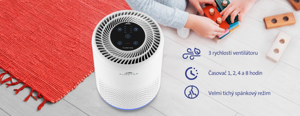 I přes menší velikost se čistička vzduchu ETA Puretee nenechá svými funkcemi zahanbit. Uvnitř skrývá osvědčenou trojkombinaci HEPA filtru, uhlíkového filtru a nylonového pre-filtru, která se postará o účinnou filtraci vzduchu v místnosti až o velikosti 12 m2. Odstraňuje nejen malé částice a pyly, ale i nežádoucí pachy.
