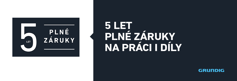 Naše kvalita je slibem, kterým vám dáváme jistotu, že se na své spotřebiče Grundig můžete spolehnout. Po registraci svého spotřebiče na webových stránkách Grundig vám garantujeme 5 let plné záruky nejen na práci servisu, ale i na veškeré náhradní díly. Účtenku schovávat nemusíte, vše je díky registraci zaznamenáno u nás.