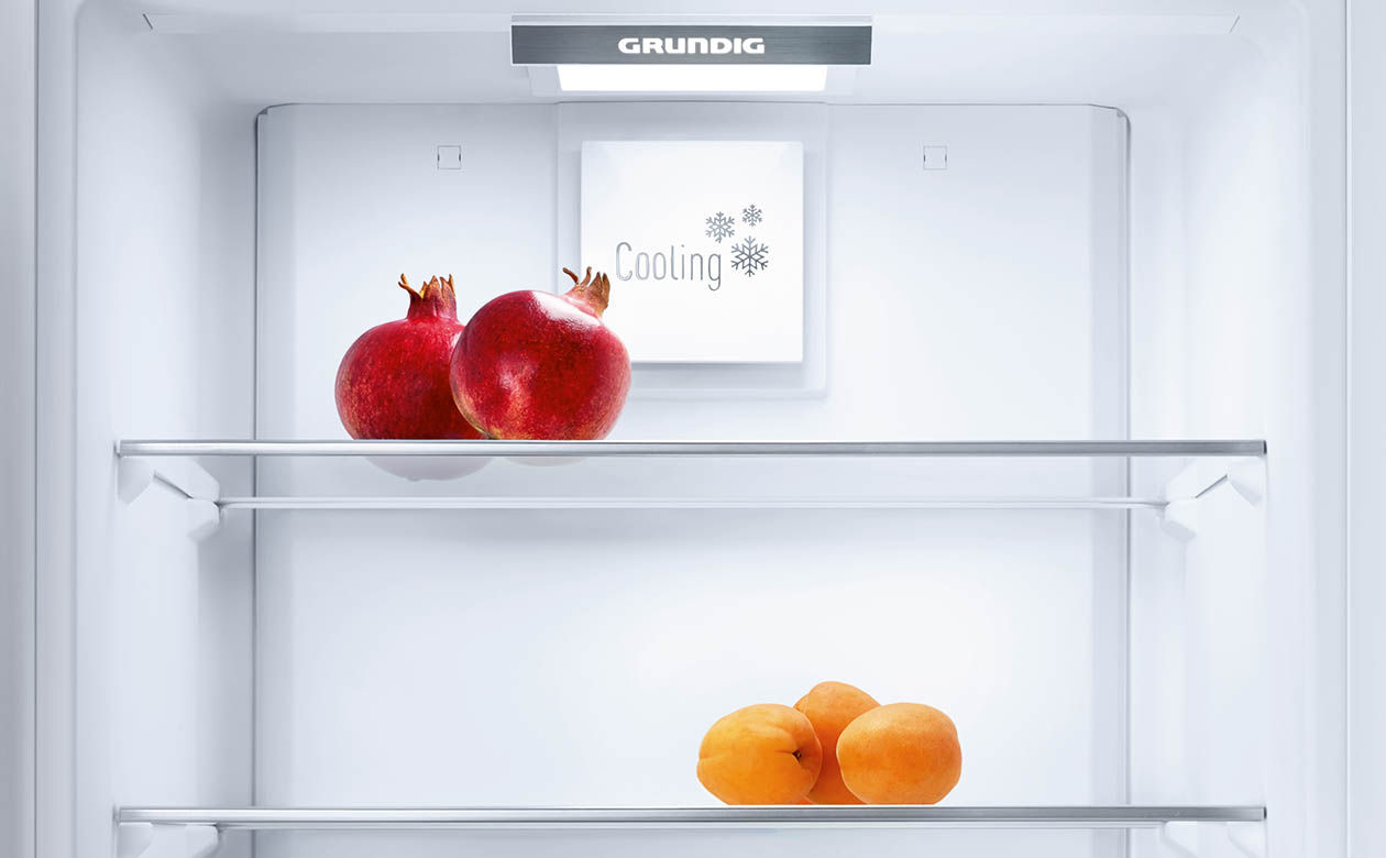 v chladničkách Grundig slouží ke skladování všeho zdravého. Díky modrému světlu, které simuluje světlo přírodní, pomáhá udržovat obsah vitamínů, nutričních hodnot a brání vzniku plísní ve vašem ovoci a zelenině. Uložené jídlo tak zůstává déle čerstvé, zachovává si svěží vzhled a přirozenou chuť.