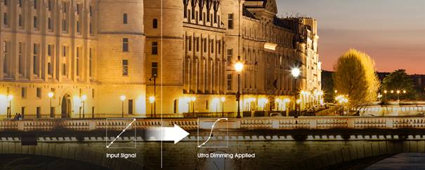 Technologie Ultra Dimming využívá odlišné křivky na jednotlivé části obrazovky, čímž jak rozšiřuje vizuální kontrast celku, tak prohlubuje jednotlivé detaily.