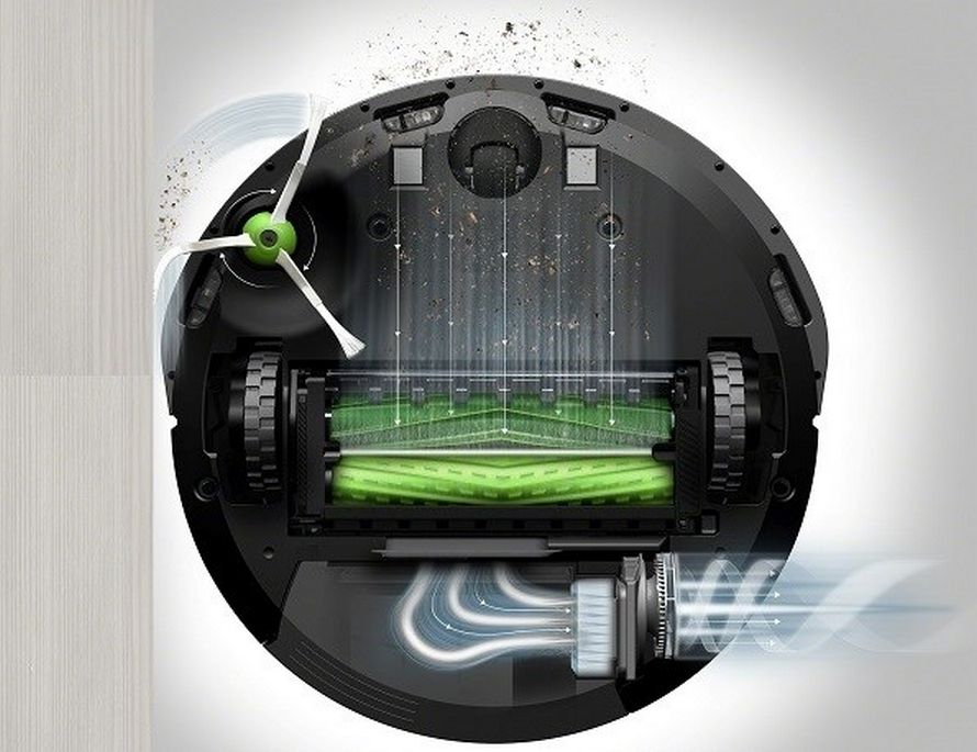 iRobot Roomba i7 je vybavena patentovaným třístupňovým čisticím systémem AeroForce, který soustředí proud vzduchu do úzké štěrbiny mezi rotující kartáče. Tím dochází k mimořádné akceleraci vzduchu a v kombinaci s vysoce účinným motorem se sací výkon zvyšuje až na desetinásobek.