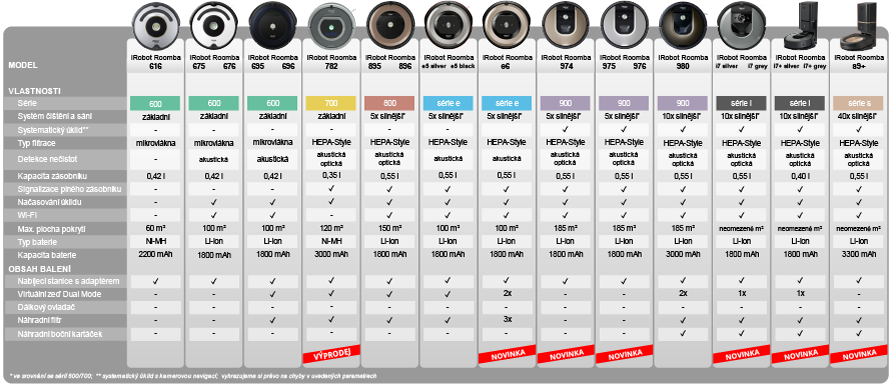 Srovnání modelů Roomba: