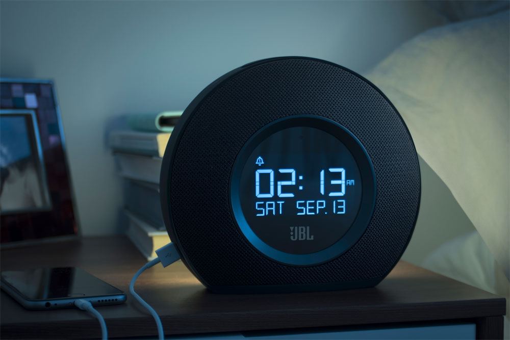Rádiobudík JBL Horizon poskytuje místnost naplňující JBL stereo zvuk s bezdrátovým Bluetooth® streamováním, duální rýchlo nabíjecí USB porty, ostrý LCD display a podstvícení. Je vybavený dvěma buzeními s volbou originálních digitálních budících tónů, až pěti rozhlasovými předvolbami a záložní baterií na zajištění toho, abyste byli vždy vzbuzení včas. Jeho kompaktní design je vhodný na umístění téměř kdekoliv.