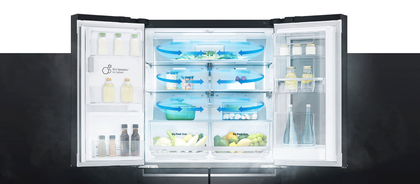 - Door Cooling+™: rychlejší obnova teploty a nižší rozdíl teplot v chladničce