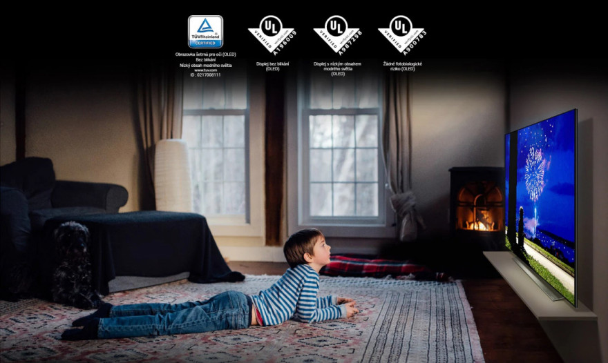 LG OLED TV byly certifikovány jako displeje bez blikání s nízkou hladinou modrého světla, které pro vaše oči neznamenají žádné fotobiologické riziko. Na rozdíl od LED TV, které blikají a vysílají velké množství modrého světla. Takže se posaďte, uvolněte a užívejte si ten pohled.