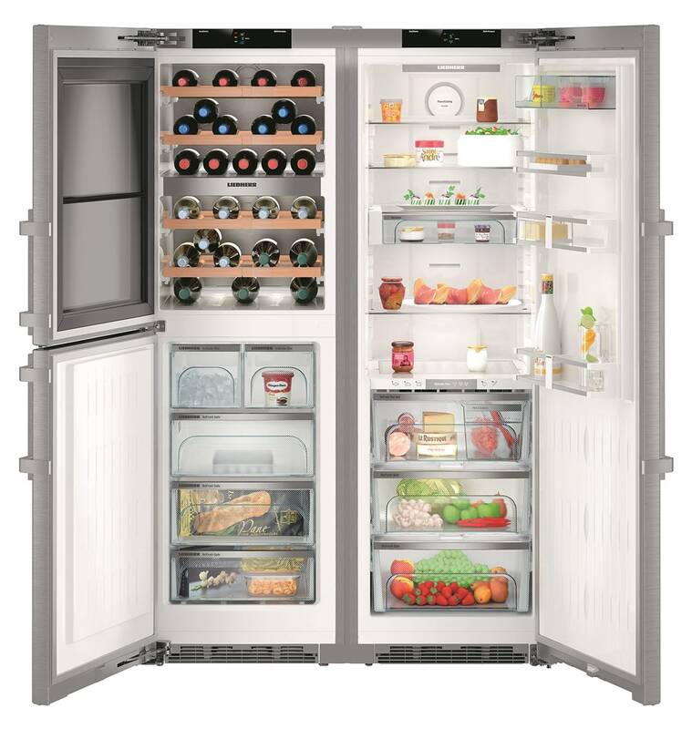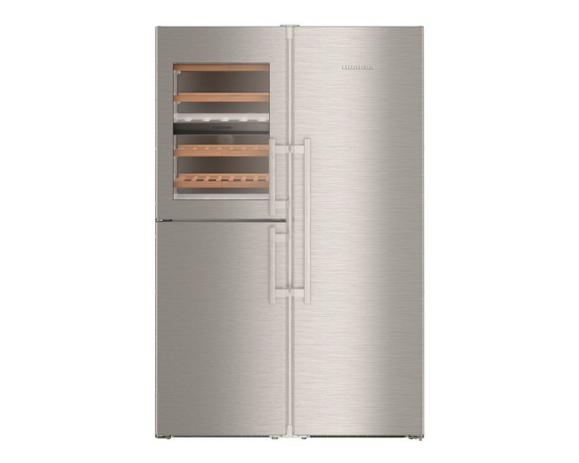 Liebherr SBSes 8496 o výšce 185 cm – volně stojící americká chladnička s luxusní vinotékou, která je integrovaná a má objem 156 l – dokáže pojmout až 48 lahví o objemu 0,75 l. K tomu dále nabízí dostatečně velkou chladicí část o objemu 372 l a 4* mrazák s objemem 133 l s nenámrazovou technologií No Frost.