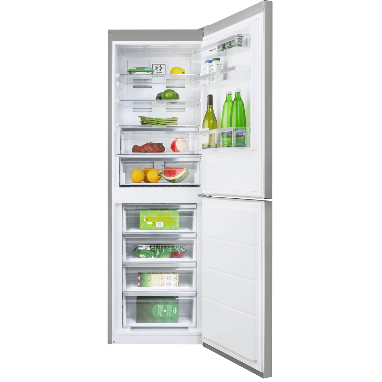 Kombinovaná chladnička PCD3132NFX je přístroj s technologií Double NoFrost, která výrazně mění kvalitu uchovávání čerstvých potravin, protože na rozdíl od NoFrost technologie nevysušuje potraviny. Double NoFrost jsou dva nezávislé okruhy, dva nezávislé ventilátory. Díky FrostProtection bude mraznička této kombinace spolehlivě fungovat až do -15°C okolní teploty. Přihrádky FreshStore a Meat&Fish umožňují správné skladování ovoce a zeleniny, masa a ryb, které díky vlastnostem těchto přihrádek zůstanou déle čerstvé. Uhlíkový filtr MaxiFresh umožňuje uchovávat potraviny v prostředí bez zápachu a bakterií, spolu s antibakteriálním madlem a těsněním přispívají ke zvýšení hygieny skladování potravin. Nulový náběh dveří umožňuje, že dveře při otevření v úhlu 90° nenabíhají, můžete tak chladničku postavit co nejblíže ke stěně. I při takto otevřených dveřích pohodlně vysunete zásuvky v chladničce i mrazničce. Dotykový displej umožňuje komfortní ovládání, nastavení usporného EcoRežimu, který snižuje spotřebu elektrické energie, či ovládání teploty v chladničce a mrazničce.