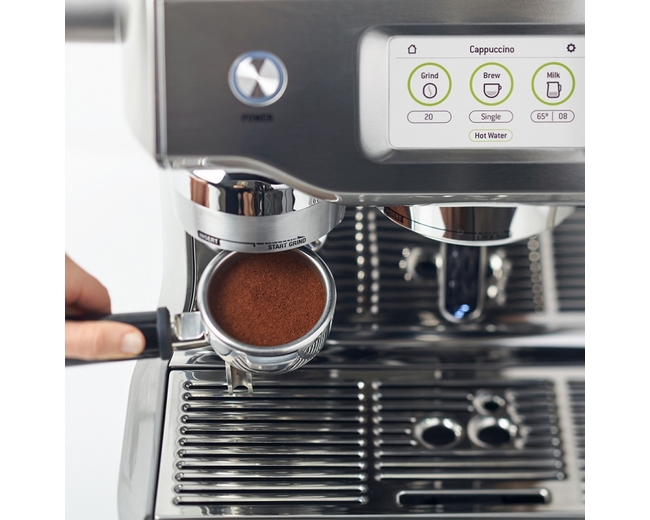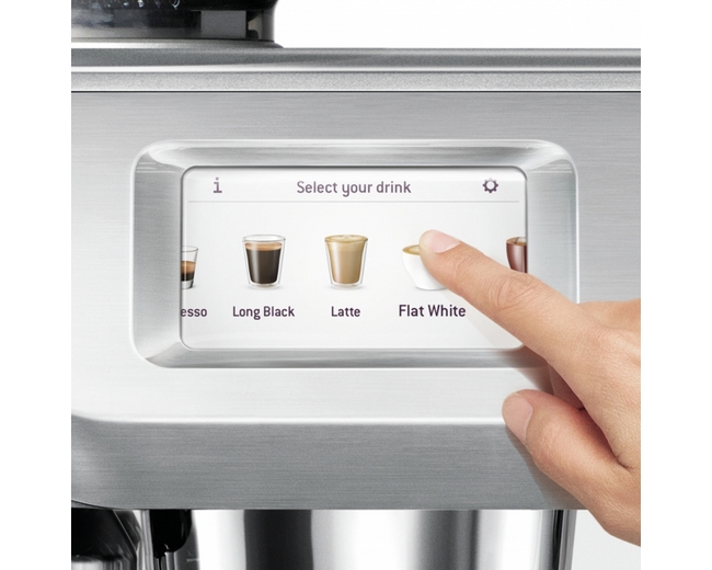 Profesionální automatické pákové espresso Sage BES920 s dotykovým displejem a v nerezovém provedení. Automatizovaná obsluha na dotykovém displeji zjednodušuje způsob, jak vytvořit vaši oblíbenou kávu ve třech jednoduchých krocích – mletí kávy, uvaření kávy a úprava mléka. Můžete snadno nastavit sílu kávy, texturu mléka nebo teplotu podle vaší chuti