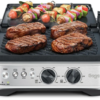 Každá deska je ovládána zvlášť, takže pokrmy lze kombinovat a vařit při různých teplotách od 100 do 230 °C -> 3 z nich jsou přednastavené – Panini, burger a steak. Obrovskou výhodou grilu Sage SGR700BSS je jeho snadná údržba – je vybaven odkapávací miskou, kterou jednoduše vyjmete.[/vc_column_text][/vc_column][/vc_row]