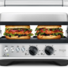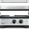 Kontaktní gril SGR700BSS můžete uskladnit prakticky kdekoli a to díky jeho kompaktním rozměrům. Spodní i horní oboustrannou grilovací desku – plochou nebo šikmo žebrovanou – z nepřilnavé keramiky lze využít nejen ve formě kontaktního zavíratelného grilu, kdy si můžete nastavit výšku horního plátu anebo desky prohodit, ale navíc i jako BBQ gril, tedy v otevřené poloze.