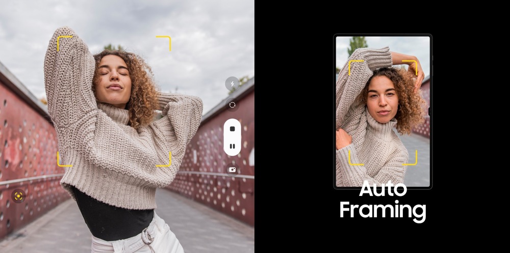 I vás otravuje neustálé nastavování vhodného úhlu během natáčení, abyste byli vždy v záběru? S šikovnou funkcí Auto Framing na tuto nepříjemnost můžete zapomenout, jelikož sama automaticky udržuje objektiv kamery soustředěný jen a jen na vás – a to dokonce, i když se hýbete. Stejně dobře vám poslouží i během videohovorů, kdy zaregistruje nově příchozího do chatovací místnosti a oddálí přední objektiv tak, aby se na obrazovku pohodlně vmístila celá skupina. To vám přinese pocit, jako byste všichni seděli v jedné místnosti.