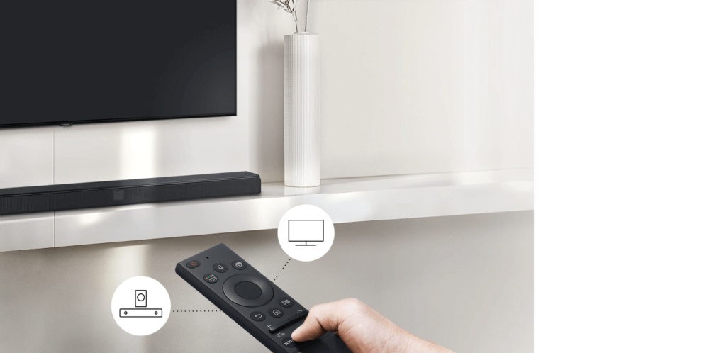 Nepotřebujete několik dálkových ovladačů. Ovládejte klíčové funkce soundbaru, jako je vypínání/zapínání, hlasitost a dokonce i zvukové efekty, pomocí dálkového ovladače Samsung TV – přímo z vašeho televizoru.