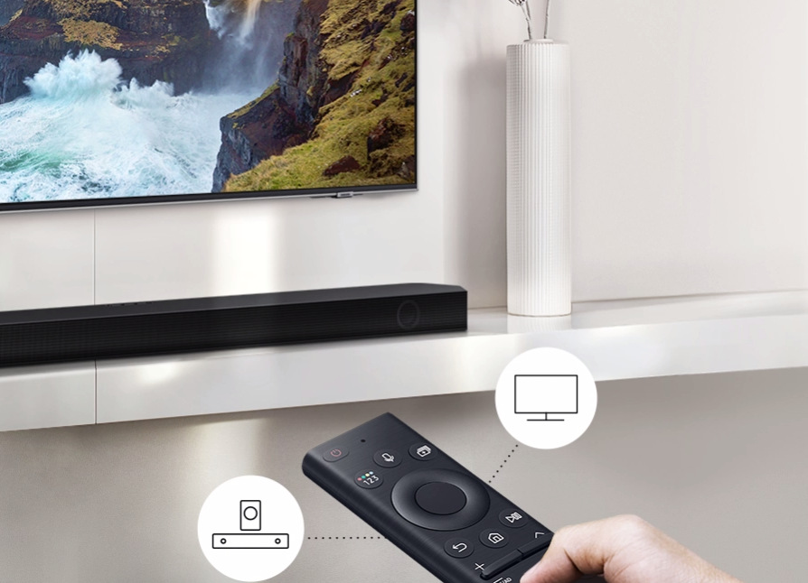 Nepotřebujete několik dálkových ovladačů. Ovládejte klíčové funkce soundbaru, jako jsou napájení, hlasitost, a dokonce i zvukové efekty pomocí dálkového ovladače k Samsung TV – přímo z televizoru.