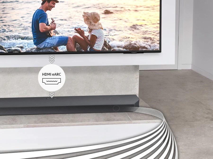 HDMI eARC přenáší přes televizor do soundbaru kvalitní a bezeztrátové formáty 3D prostorového zvuku, jako je Dolby ATMOS, a to i z připojených herních konzolí a přehrávačů UBD .