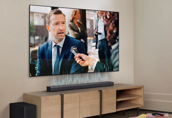 Soundbar Samsung analyzuje zvukový signál a automaticky poskytuje optimalizovaný zvuk na základě každé scény. Adaptivní zvuk vám umožní slyšet hlasy jasně i při nízké hlasitosti, takže uslyšíte i tiché rozhovory.