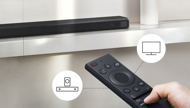 Nepotřebujete několik dálkových ovladačů. Ovládejte klíčové funkce soundbaru, jako jsou napájení, hlasitost, a dokonce i zvukové efekty pomocí dálkového ovladače k Samsung TV – přímo z televizoru.