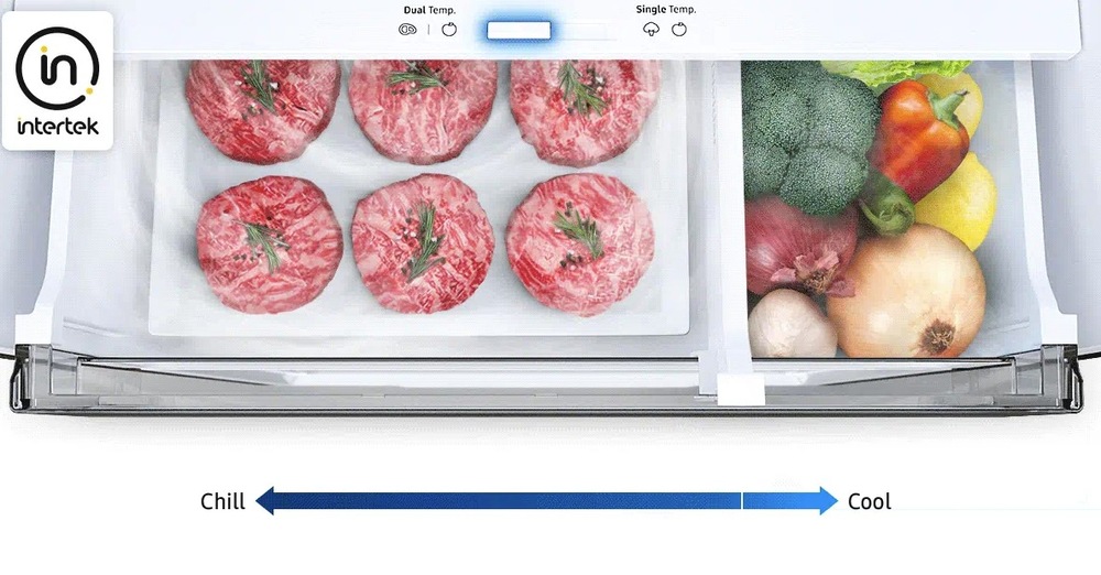 Díky funkci All-Around Cooling budete mít jistotu, že všechno jídlo uložené v lednici je rovnoměrně chlazené. Toto řešení ochlazuje každou přihrádku od jednoho rohu k druhému, konstantně kontroluje teplotu a cirkuluje podle toho studený vzduch pomocí sofistikovaných průduchů.