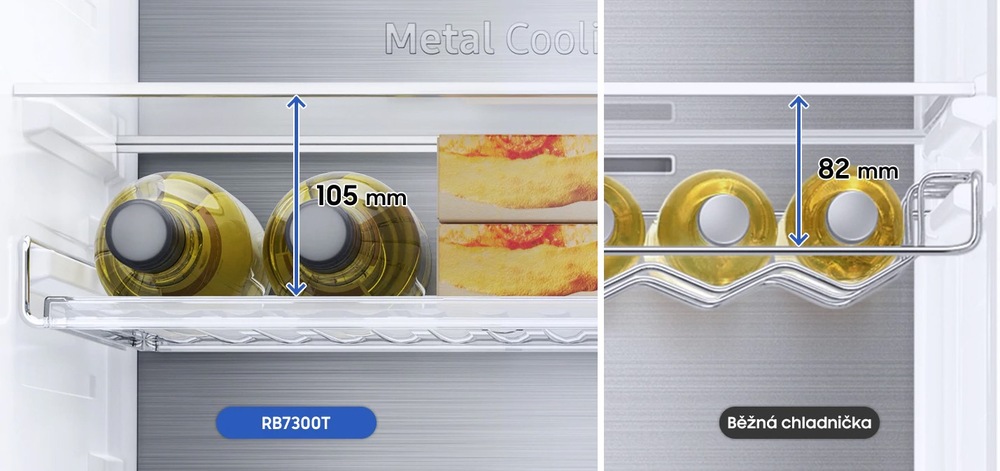 O rychlé chlazení či mrazení se postará funkce Power Cool. Pouhým stisknutím tlačítka začne foukat do chladničky studený vzduch pro bleskové ochlazení potravin a nápojů. O to, aby byly potraviny uchovávány bez námrazy, se zase postará technologie No Frost, která zlepšuje cirkulaci vzduchu pro udržení stálé teploty.