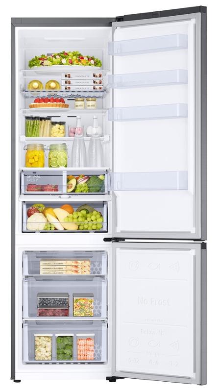 Chladnička s mrazničkou Samsung RB38T676CS9/EF zajistí vašim potravinám optimální skladovací podmínky. Díky technologii SpaceMax disponuje oproti jiné průměrné chladničce důmyslně organizovaným úložným prostorem, a to při zachování vnějších standardních rozměrů. Pohání ji digitální invertorový kompresor s 10letou zárukou a potěší vás celou řadou moderních a inovativních funkcí. Spadá do úsporné energetické třídy C a jistě oceníte její velmi tichý chod, který nepřekročí 35 dB.