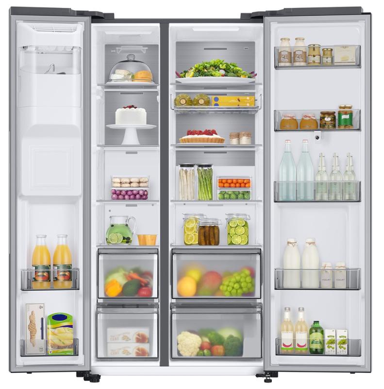 Americká chladnička v energetické třídě E a šedém provedení s celkovým objemem 614 l, elektronickým ovládáním a úsporným LED osvětlením. Samsung RS6HA8891SL/EF disponuje digitálním invertorovým kompresorem a dvojitým chladicím systémem Twin Cooling Plus s oddělenými okruhy pro chladničku a mrazák.