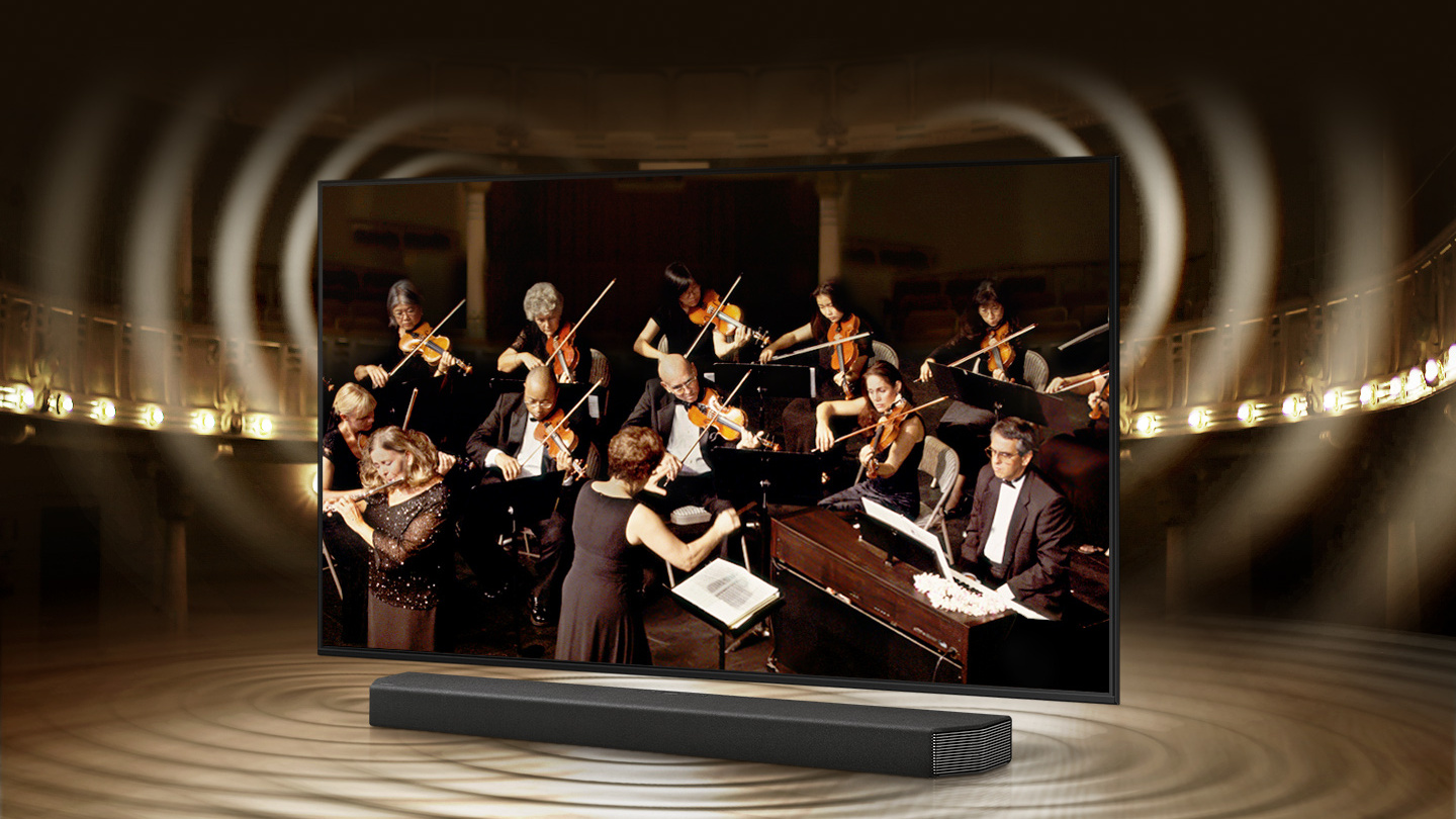 Reproduktory televizoru nemusejí zůstat nevyužité, když k němu připojíte soundbar. Stačí využít chytré řešení Q-Symphony. Zvuk se line jak z kompatibilního soundbaru, tak ze samotného televizoru – je díky tomu silnější a má větší prostorový efekt.