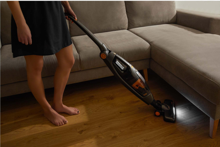 Díky sklopné rukojeti Ergo Clean se bez problému dostanete i pod nízký nábytek. Tam vám na prach posvítí LED osvětlení na hubici. Neunikne vám tak ani sebemenší nepořádek. Aby byla manipulace maximálně jednoduchá, lze s hubicí otáčet až o 180°. Perfektní ovladatelnost a skvělý výkon, to je vysavač Sencor.
