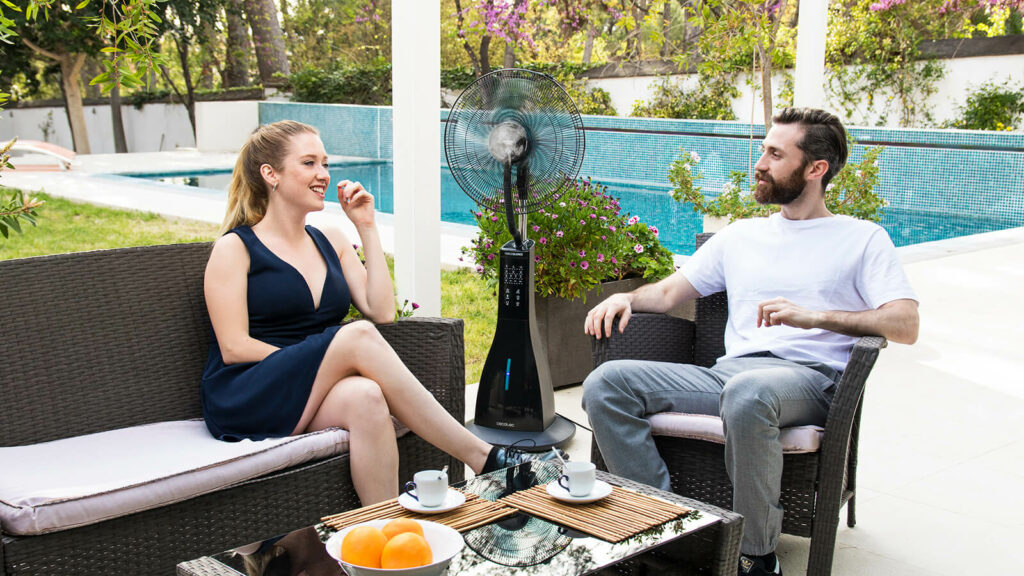 S tímto ventilátorem rozprašovače si můžete kdykoli vychutnat pocit čerstvého vzduchu. Má 3 rychlosti pro nastavení intenzity proudu vzduchu, který můžete přizpůsobit podle situace nebo vašich potřeb. Je vybaven programovatelným časovačem až 7,5 hodiny, po kterém se ventilátor automaticky vypne, aby vám poskytl maximální pohodlí při používání a šetřil energii. Má také regulátor rozprašování, takže můžete vytvářet různá prostředí doma nebo na terase. Můžete si také vybrat mezi různými provozními režimy, jako je Echo, Night nebo oscilace lopatek.