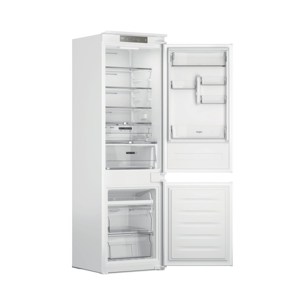 Vestavná kombinovaná chladnička Whirlpool WHC18 T322 s celkovým objemem 250 litrů a s technologií 6.smysl Total No Frost. Mrazící část ve spodní části má 68 litrů a obsahuje 2 zásuvky. Mrazicí kapacita je 7 kg za 24 hodin, v případě výpadku je výdrž až 16 hodin. Chladící část o objemu 182 litrů je vybavena 5 poličkami, 1x Multi Fresh Box + 1x Fresh Box. Ve dveřích chladničky najdete police a držák na lahve. Interier chladničky osvětluje LED světlo. Maximální hlučnost je 34 dB.