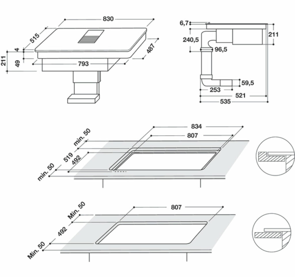 - Odvod par: potrubím ve spodní skříňce – připojení skrz stěnu do komína a nebo recirkulace