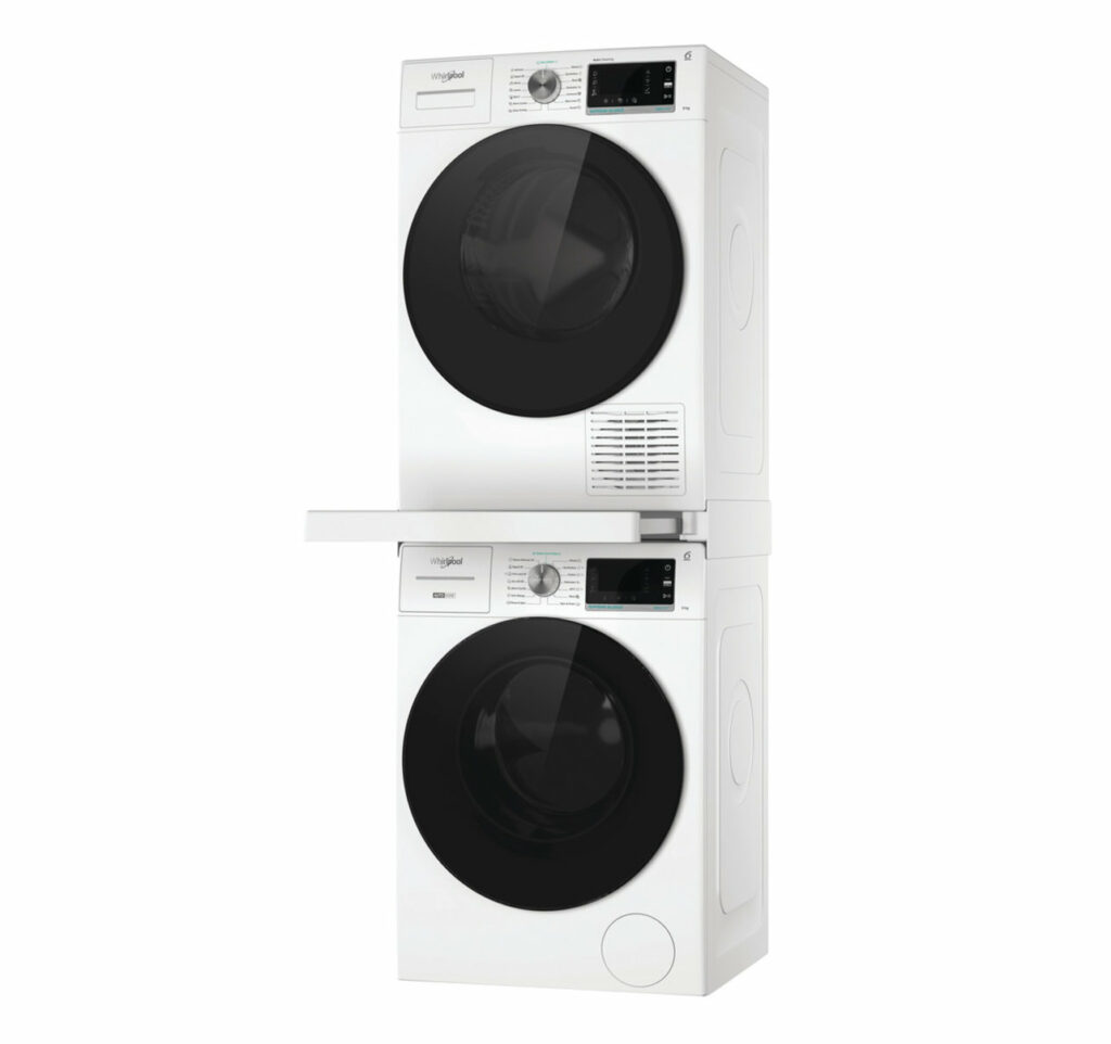 Praktický mezikus mezi pračku a sušičku s výsuvnou policí značky Wpro SKD 500. Mezikus je určený pro design Whirlpool Supreme Silence.