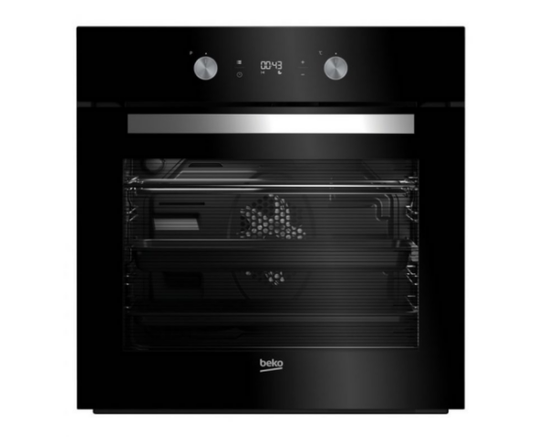 Vestavná samostatná trouba Beko BIM 24300 BS s 8 volitelnými programy, velkým objemem 71 litrů nabízí teleskopický výsuv, dotekový displej kde jsou zobrazeny hodiny nebo probíhající program pečení